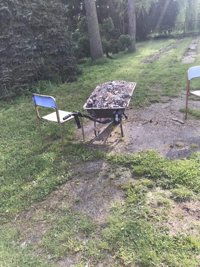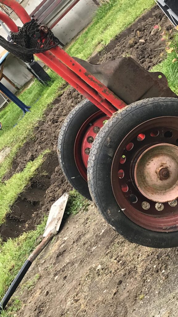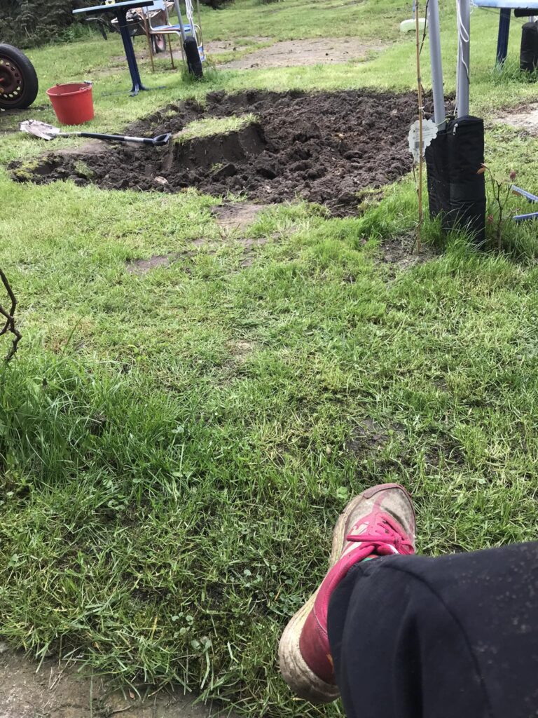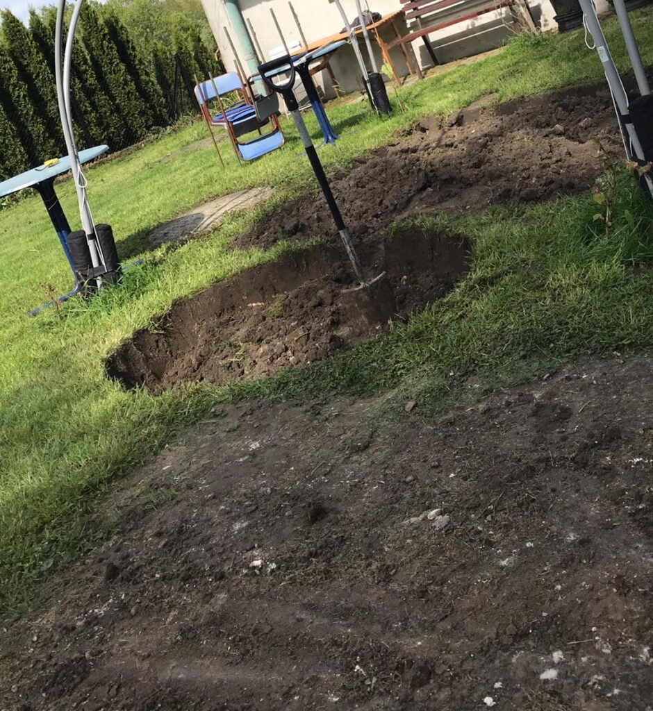 I tak łopatą w wyznaczonym, wymyślonym kształcie wygrzebywałam ziemie do wiadra i wywoziłam ją na taczkach a raczej wózku w inne miejsce około 8 godzin.