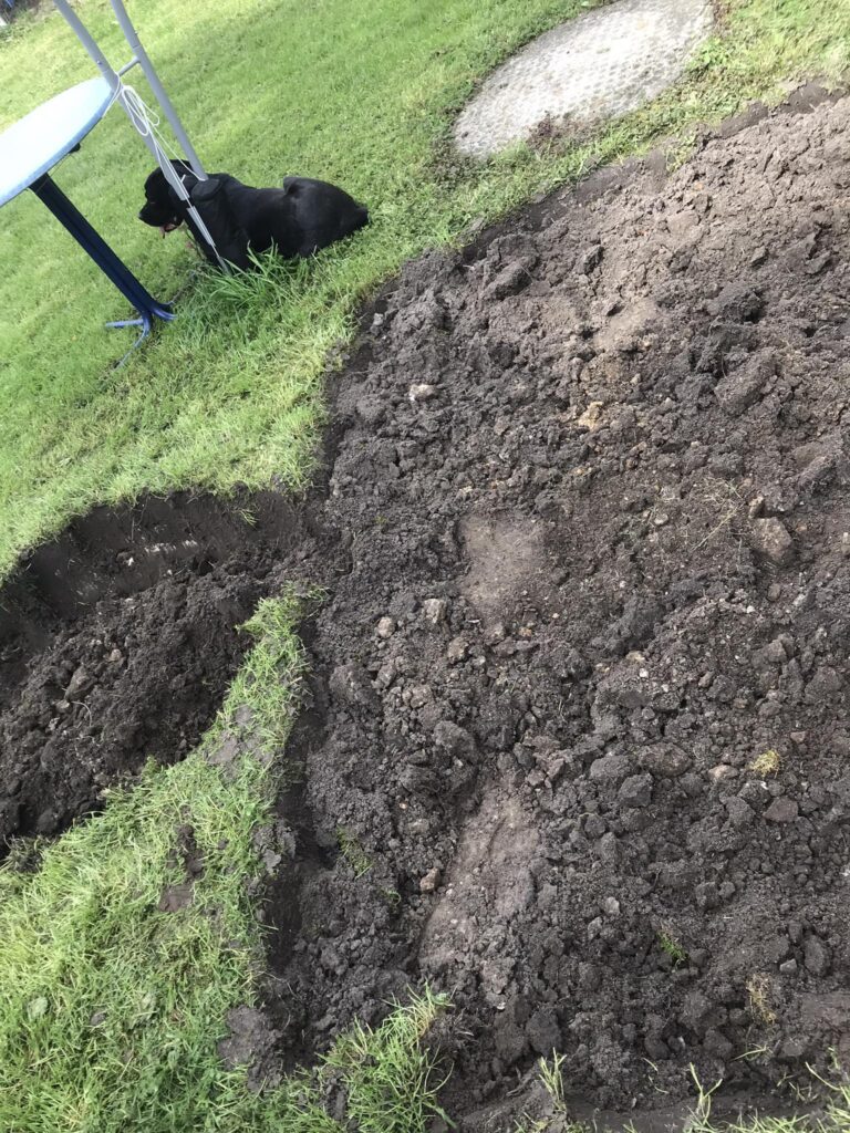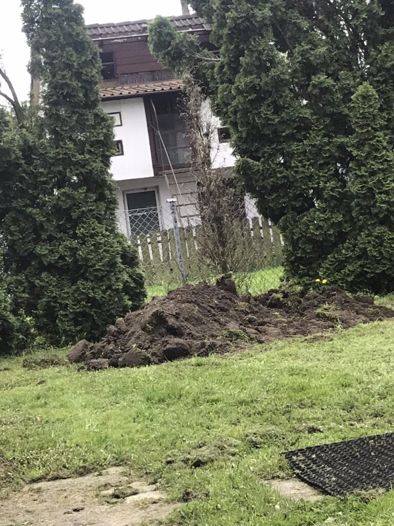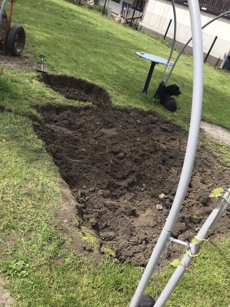 Naszła mnie wątpliwość co dalej robić z tym nadmiarem ziemi. Musiałam odkładać ją w inne miejsce. Jak się okazało, że ziemi jest bardzo dużo i trzeba ją gdzieś przenosić, przyszedł mi do głowy pewien pomysł. W trakcie tych prac doznałam wizji powstającego oczka wodnego w miejscu robiącego się kopca ziemnego. W niedługim czasie zrobię tam również skalniak.