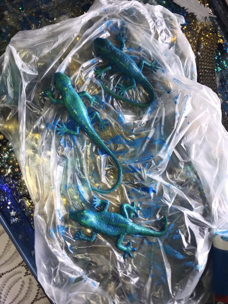 W Actionie były tylko zielone jaszczurki, wiec kupiłam je i pomalowałam błękitną farbą akrylową.