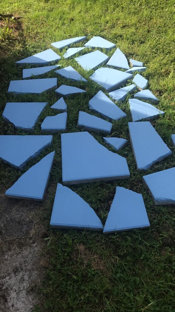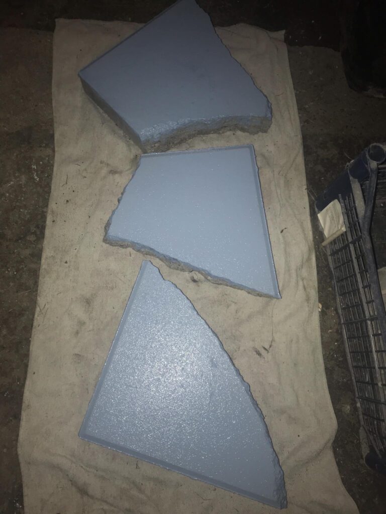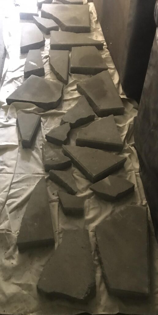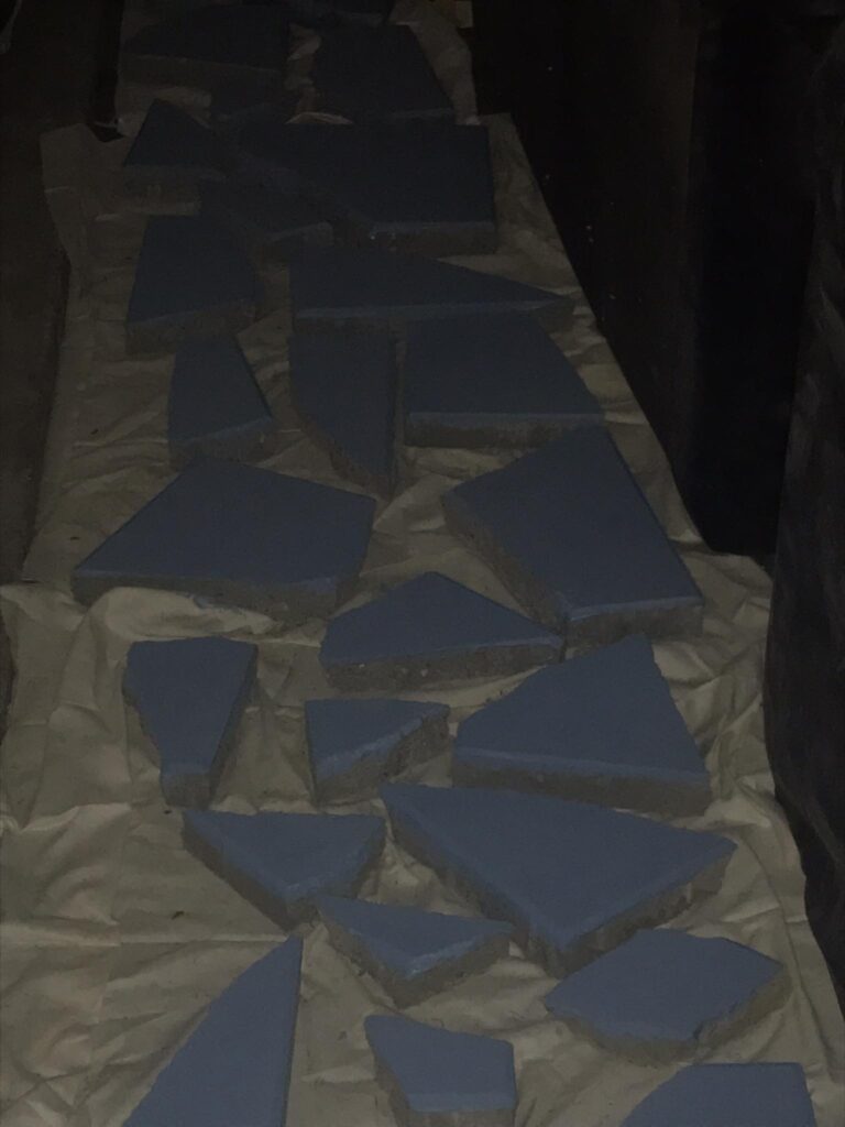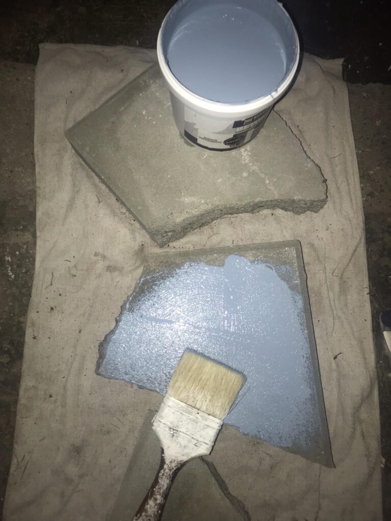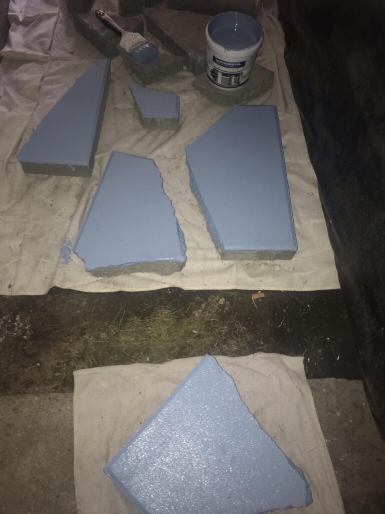 Aby można było rozpocząć etap wylewania betonu należy mieć przygotowane wszystkie elementy dekoracyjne, nawet te gabarytowe. Dla oczekiwanego efektu warto gruz odpowiednio wcześniej pomalować farbą, aby był gotowy przed wylaniem wylewki. Ja miałam pokruszone płyty chodnikowe, które użyje w podłodze w formie mozaiki. Jeśli macie inne większe kamienie można również je wykorzystać.
